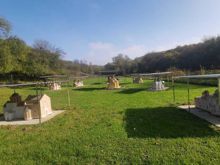 A templom mögötti kertben egy árkádos épület mögött nevezetes szerb ortodox templomok makettjei sorakoznak.